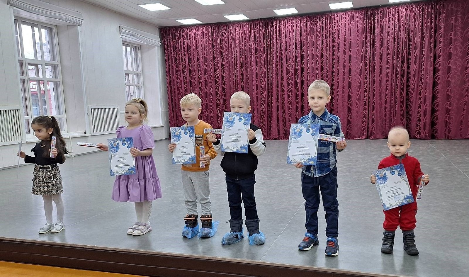 Для победителей был устроен праздничный концерт , в котором приняли участие воспитанники вокальной студии "Апельсин" и младшая группа ансамбля "Радость". Все ребята получили новогодние сувениры и грамоты.